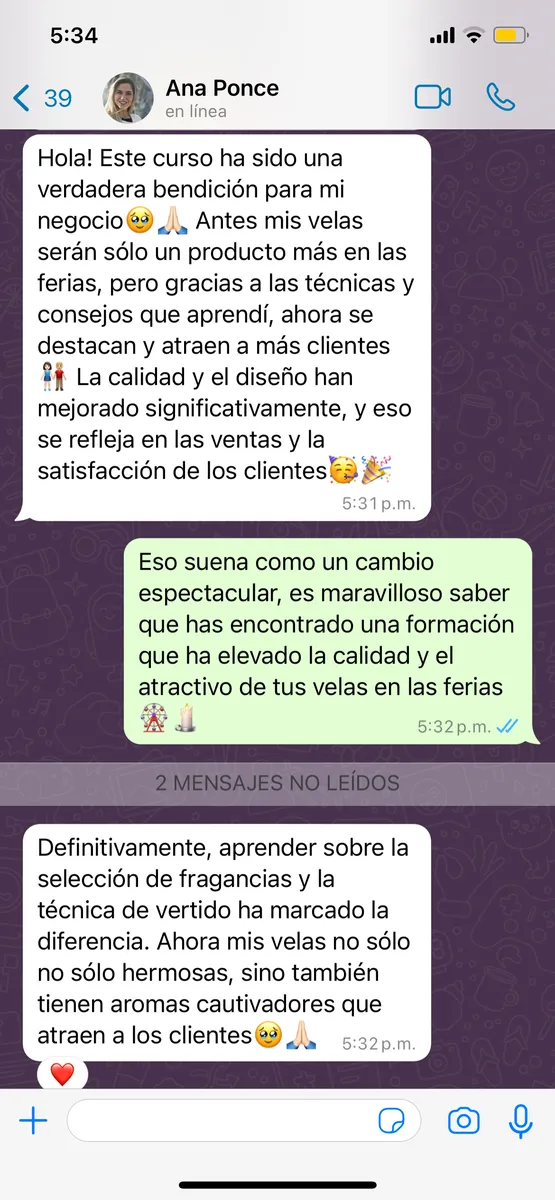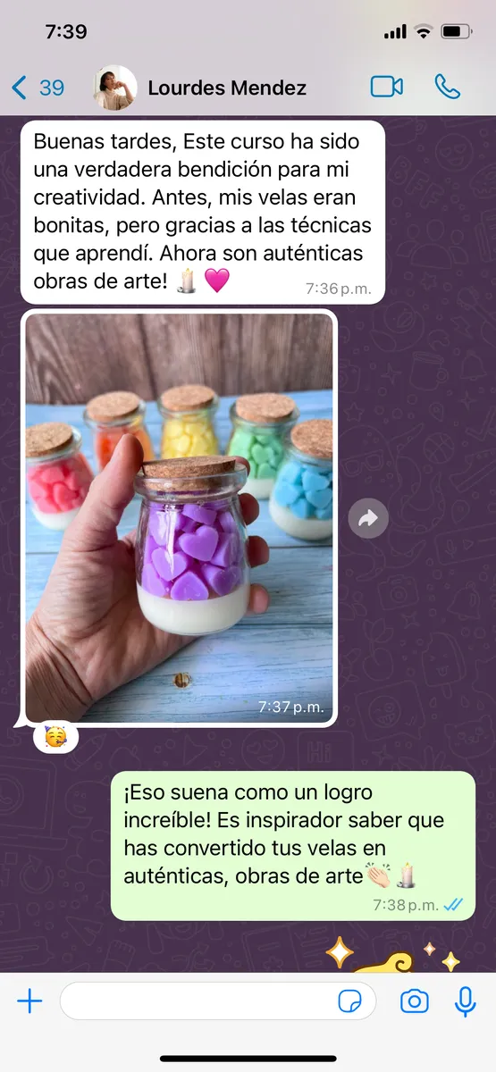 🕯️ Aplicable de Inmediato: Desde la primera lección podrás aplicar lo aprendido y empezar a crear tus propias velas.